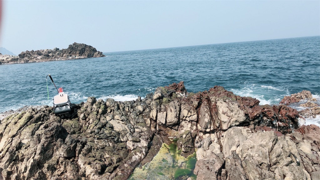 波でバッカン倒されエサが磯に食べられました。。。涙
